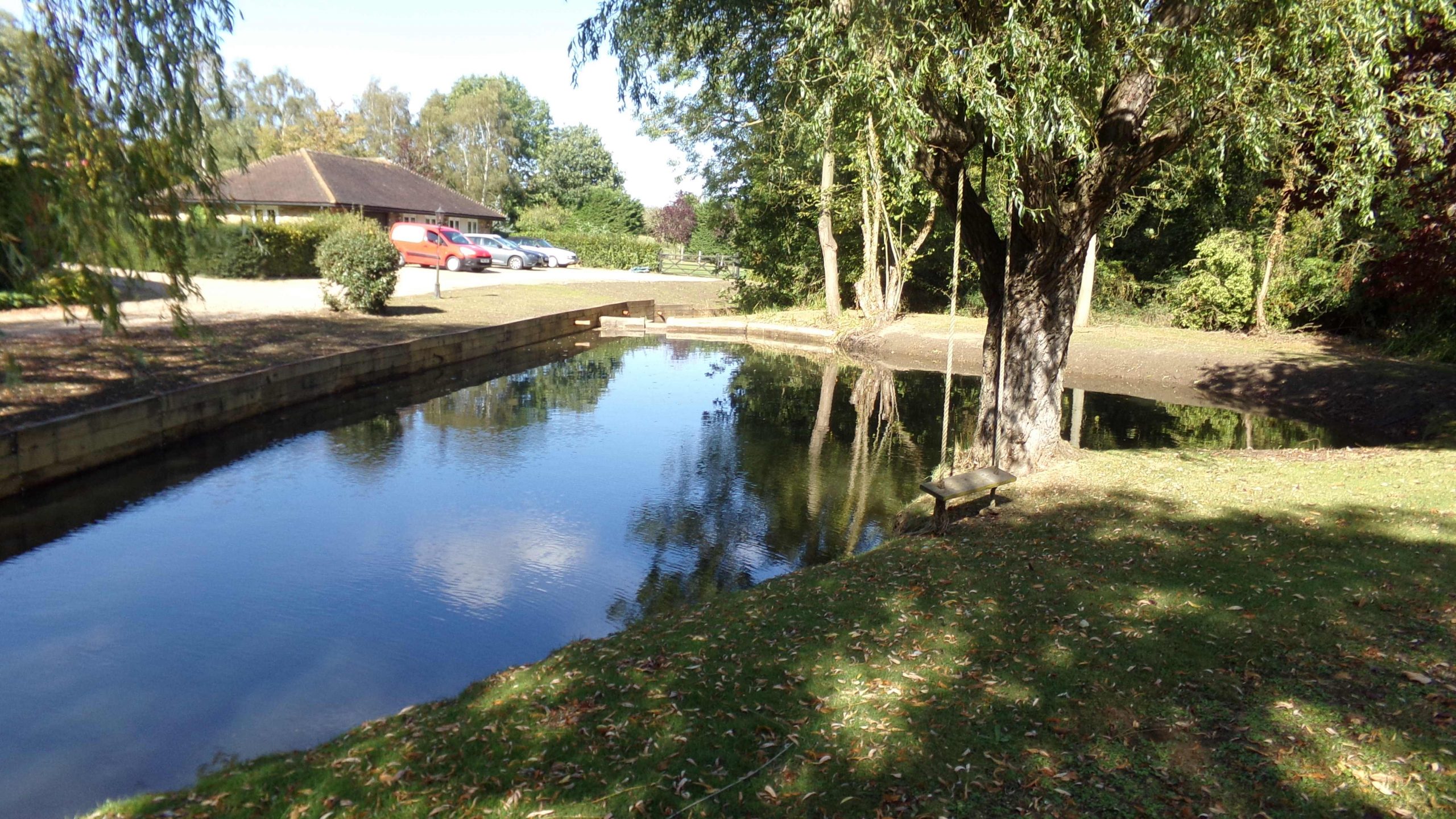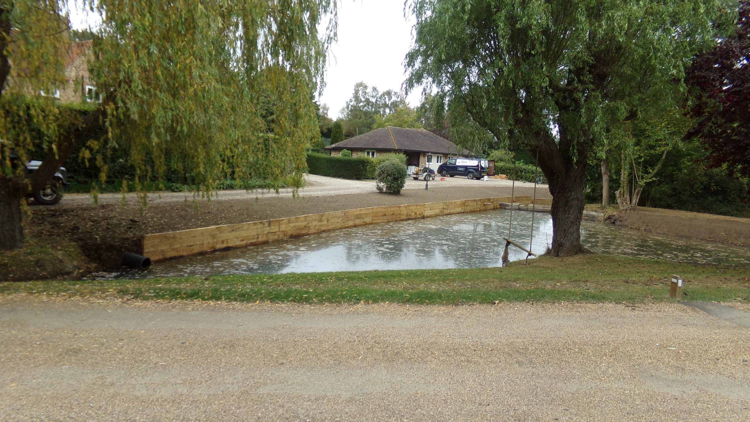 R & M Ponds restored a pond near Dunmow in Essex. The pond was overgrown with a damaged bank.