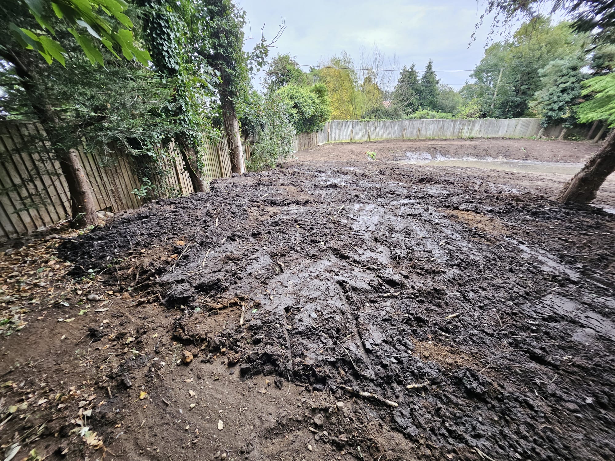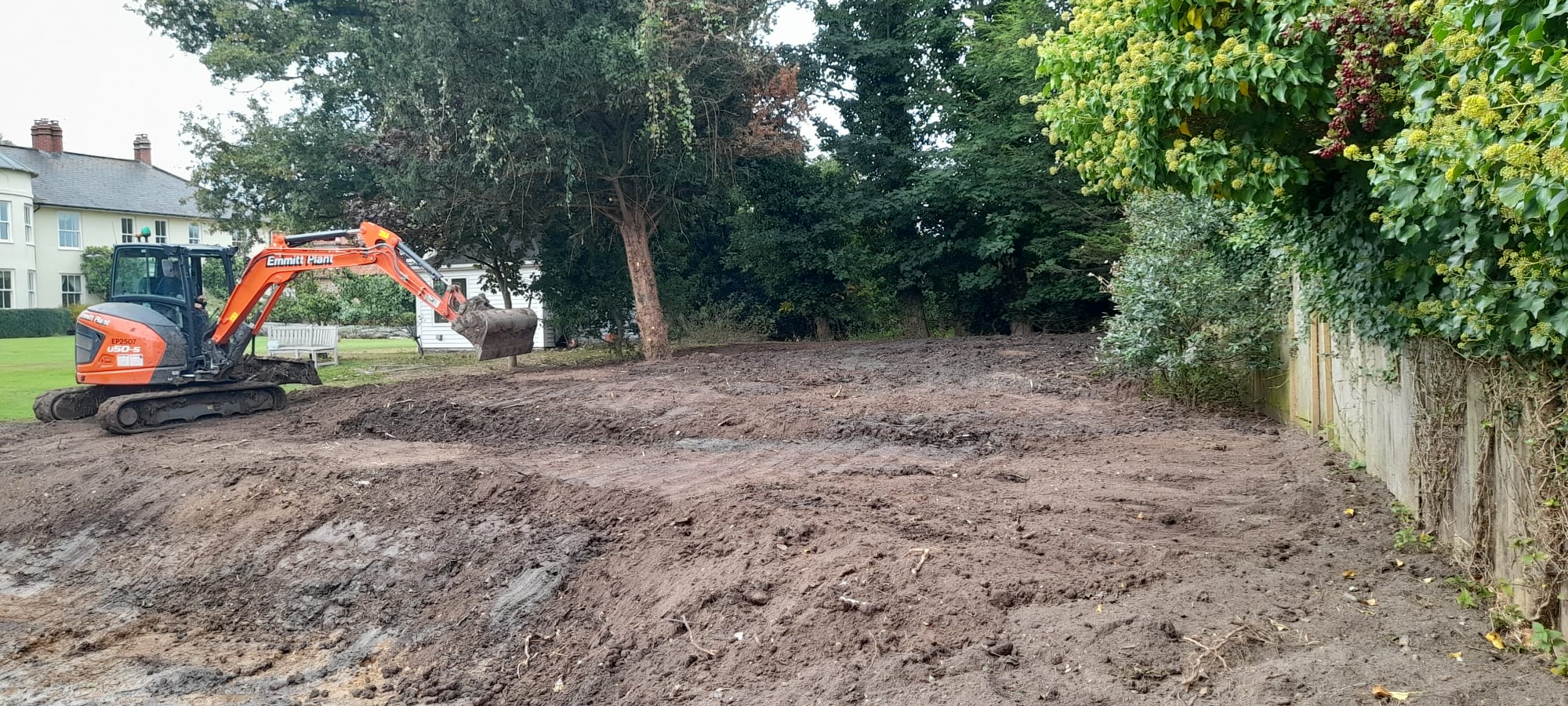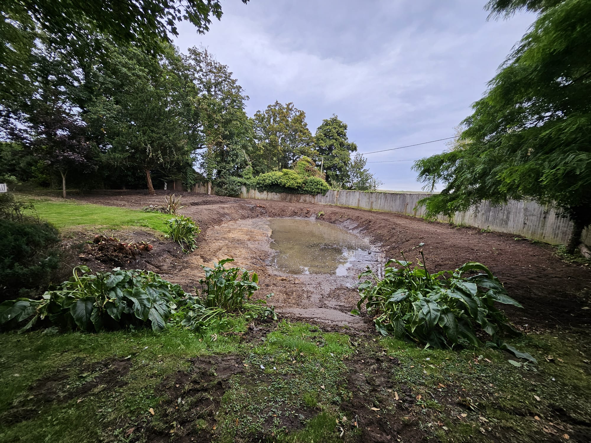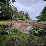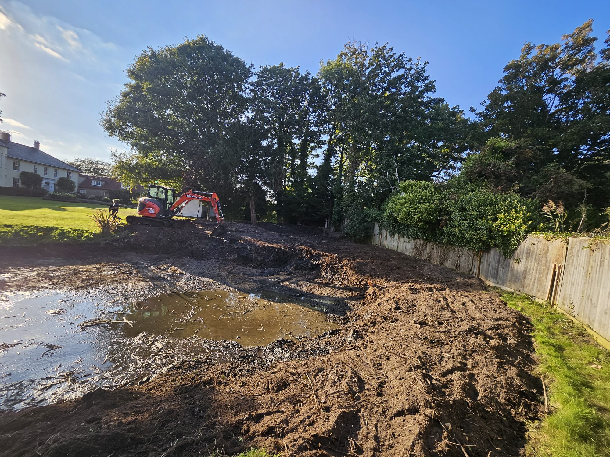 With the dredging complete, the banks of the pond were reshaped to enhance its visual appeal and integrate it better with the rest of the garden. The crater containing the dredged material was covered and levelled, as was the broader garden area, to achieve a neat finish.